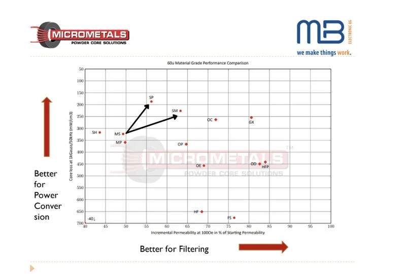 Micrometals Inc. hebt seine Sendust-Materialen auf ein neues Niveau: Im Vergleich zum Standard Sendust (MS) konnten die Verluste beim neuen SP um rund 40 % gesenkt werden (bei 100mT, 50kHz).